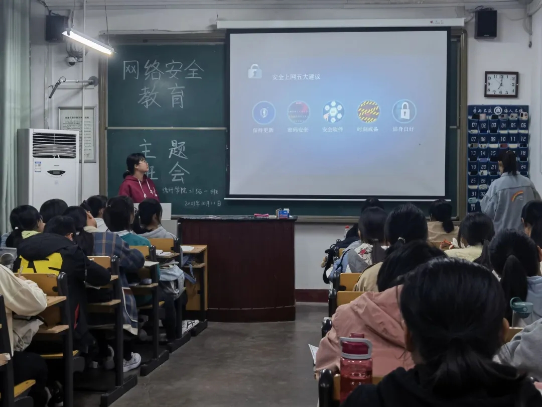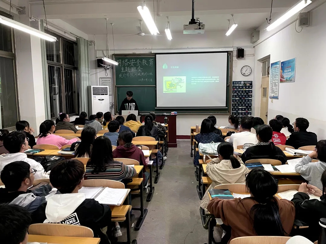 本次班会由各班宣传委员组织进行。此次班会内容以当前网络安全为重点,从国家网络安全法、网络常见安全风险及五个安全上网建议三方面展开宣讲。各班通过引导学生观看网络安全微课,了解相关案例进一步学习提升,增强学生网络安全责任意识和服务意识,贯彻落实习近平总书记在全国网络安全和信息化工作会议上的重要讲话精神。