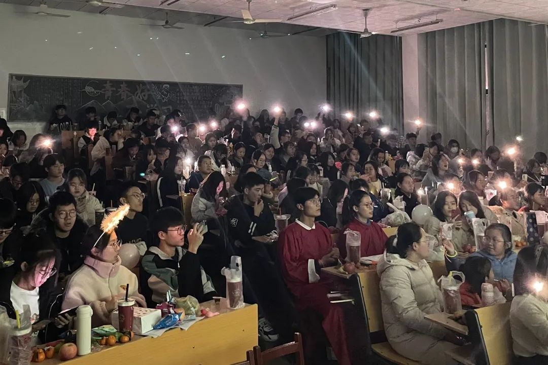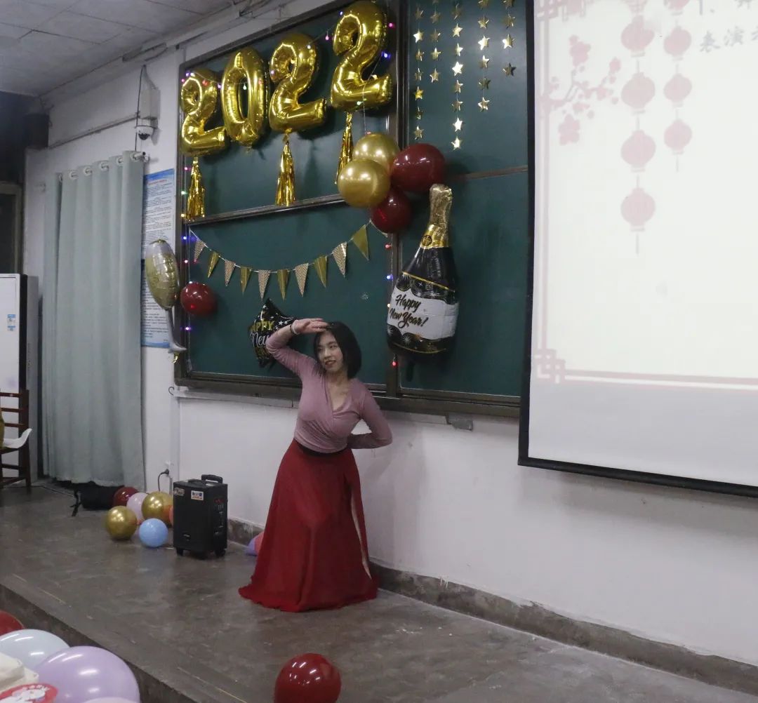 在热场舞《万疆》后,季中书记为本次元旦联欢晚会致辞。他回顾了同学们本学期的取得的成绩和进步,鼓励同学们深刻领悟、不忘初心,在2022年志存高远,脚踏实地,走向更加美好的未来。本次晚会共17个节目,主题鲜明,精彩纷呈,高潮迭起,赢得了在场观众的广泛好评。极具创意的小品《白雪王后》和《达拉崩吧传》以出乎意料的剧情和诙谐调侃的语言令在场观众捧腹,将全场火爆的气氛点燃;马欣妍同学和宋远昌同学带来的相声表演《我要讲规矩》以默契的配合和幽默的动作将晚会的氛围推向高潮。歌曲《晴天》《孤独患者》等节目的精彩表演都成为晚会的亮点之处。晚会期间,李宴美老师为同学们送上真挚的新年祝福,对即将到来的2022年做出新的展望。晚会最后,全体同学合唱《稻香》,为本次元旦联欢晚会画上了圆满的句号。