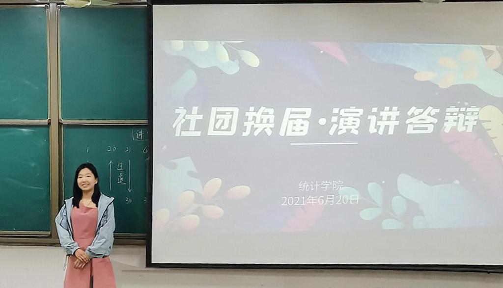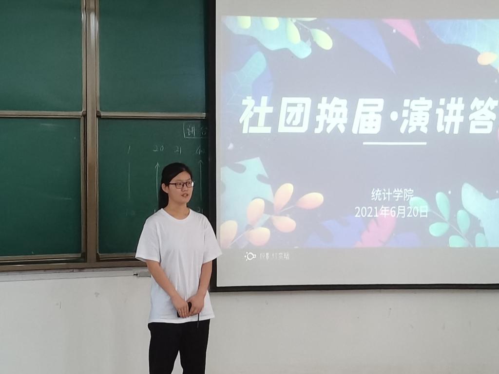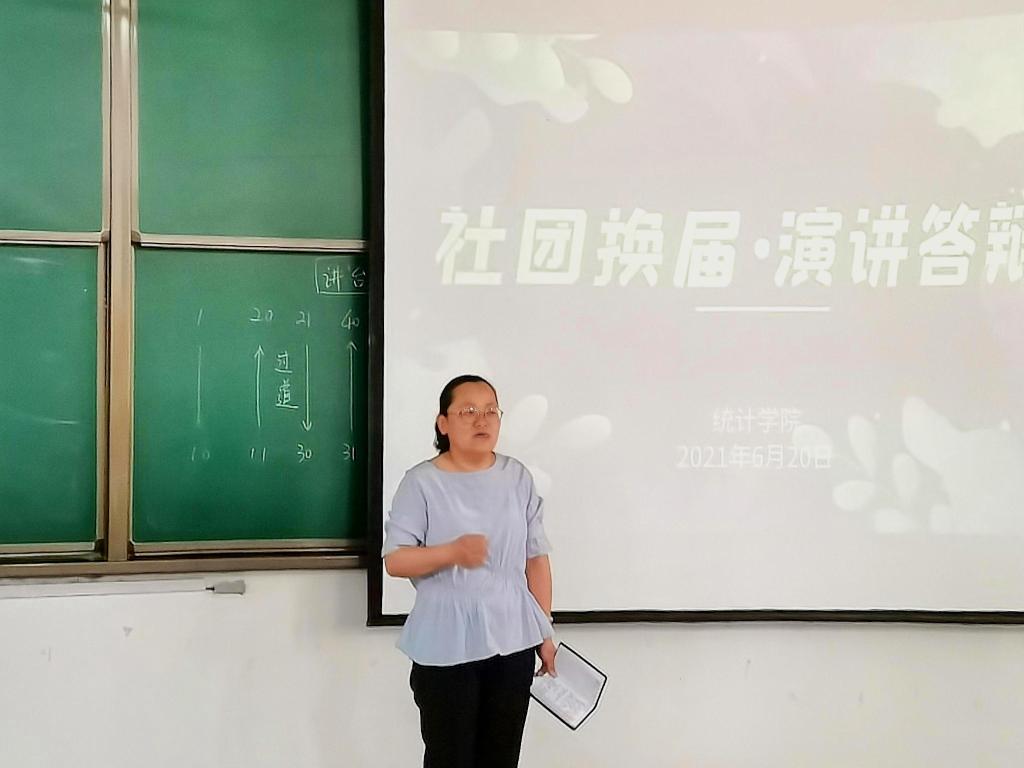 本次竞选按照瑜乐圈、家教协会、统计学社、劳动节俭社的顺序开展,参与换届竞选的武靖宇、孙辉、陈心雨和胡波昊同学依次上台进行演讲和答辩。每位竞选者的演讲和答辩都各具特色、充满信心,充分表述了自身的竞争优势。面对社团指导老师的问题也丝毫不紧张,对答如流。经过四名竞选者的演讲及答辩,由全体与会成员共同投票选举。最后,由李宴美老师宣布社团换届结果,各学社前任社长对自己的工作进行总结报告,为新任社长提供工作经验以及工作要求。会议最后,团委书记李宴美发表讲话。她对上任社团干部的辛勤付出和出色的工作成绩表示肯定并向新任社团干部的任职表示热烈祝贺。接着,她对过去一年里,各社团取得的优秀成果进行了总结的同时,也对体育赛事直播