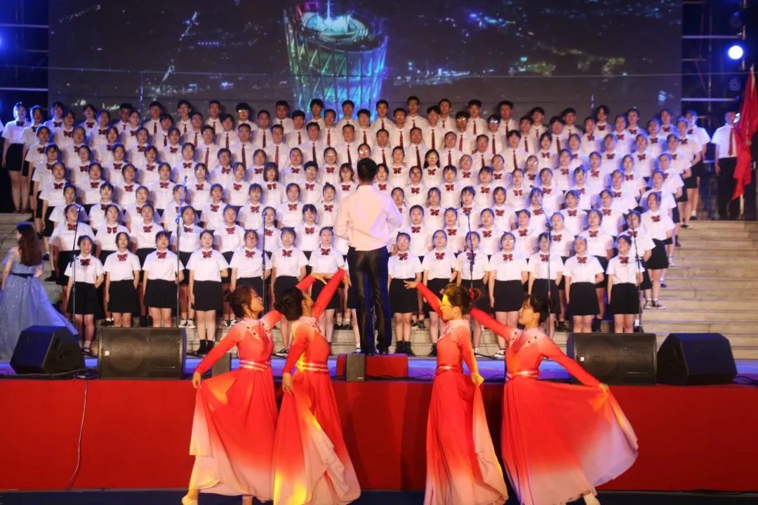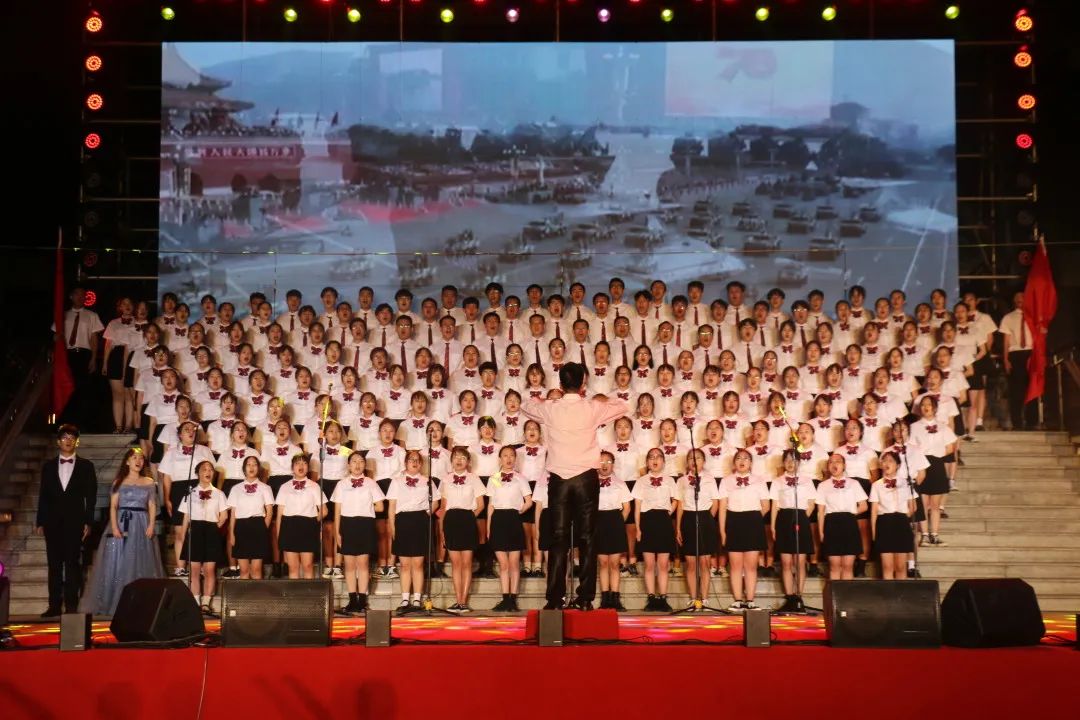 的师生们整齐划一,精神抖擞的站在舞台的中间。音乐响起,指挥双手一撒,嘹亮的歌声唱响整个夜空。两首经典的老歌《走向复兴》,《在灿烂的阳光下》,它们承载着太多的民族感怀和时代记忆,讴歌了中国共产党带领中华民族走向伟大复兴的使命担当。最终,经过评委会现场评定,体育赛事直播