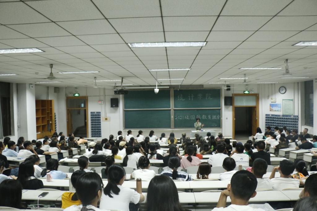 王丹丹首先为2021级同学们讲解了有趣的军旅生活,丰富的场景描述让在座的同学们都兴趣盎然。其次她为同学们讲述了严格的军事训练,通过对比自身和2021级同学们为期两周的军训,她希望2021级的同学们通过严格的军事训练提高自身的政治觉悟,激发爱国热情,发扬革命英雄主义精神,培养艰苦奋斗,刻苦耐劳的坚强毅力和集体主义精神,增强国防观念和组织纪律性,养成良好的学风和生活作风,掌握基本军事知识和技能。最后王丹丹感慨自己身为军人的两年生活,能够成为一名军人,是她做的最正确的选择之一,因为青春无悔,此生无悔。