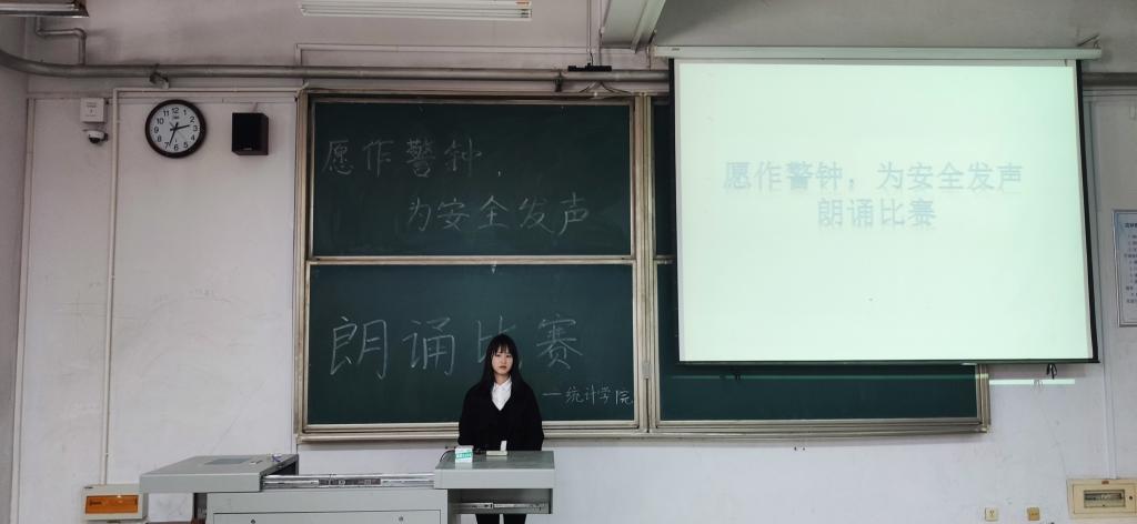 于4月17日下午2点30分在综合教学楼103教室开展“愿作警钟,为安全发声”朗诵比赛活动。