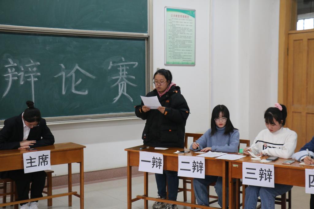 辩论赛于12月5日下午三点在综合楼405顺利举办,邀请学生会副主席徐玮廷,纪检部副部长徐凡淅,学习部副部长苗淑伟担任评委,由李茵茵担任主席。