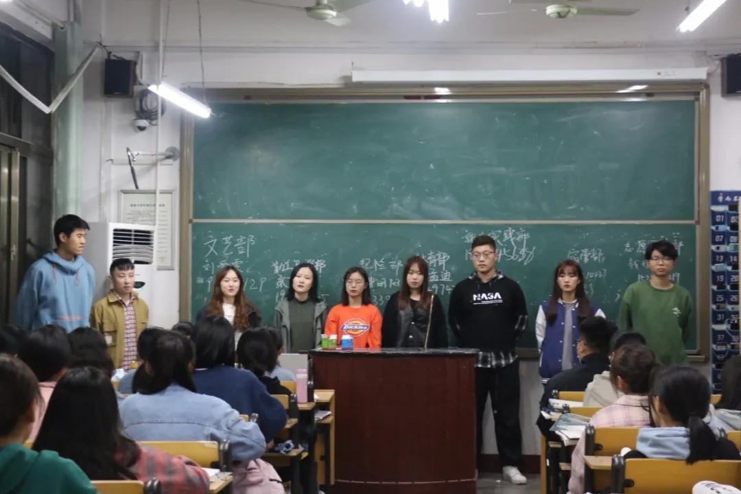 首先,主席团成员与各部门部长一同进入20级各班进行自我介绍。20级新生用热烈的掌声欢迎师哥师姐们。随后,在各主席团成员的带领下,各部门副部长分组进入各个班级进行自我介绍与部门简介。宣讲过程中,各部门副部长根据自己部门的职能、特点进行了详细的宣讲,使新生们初步了解了体育赛事直播