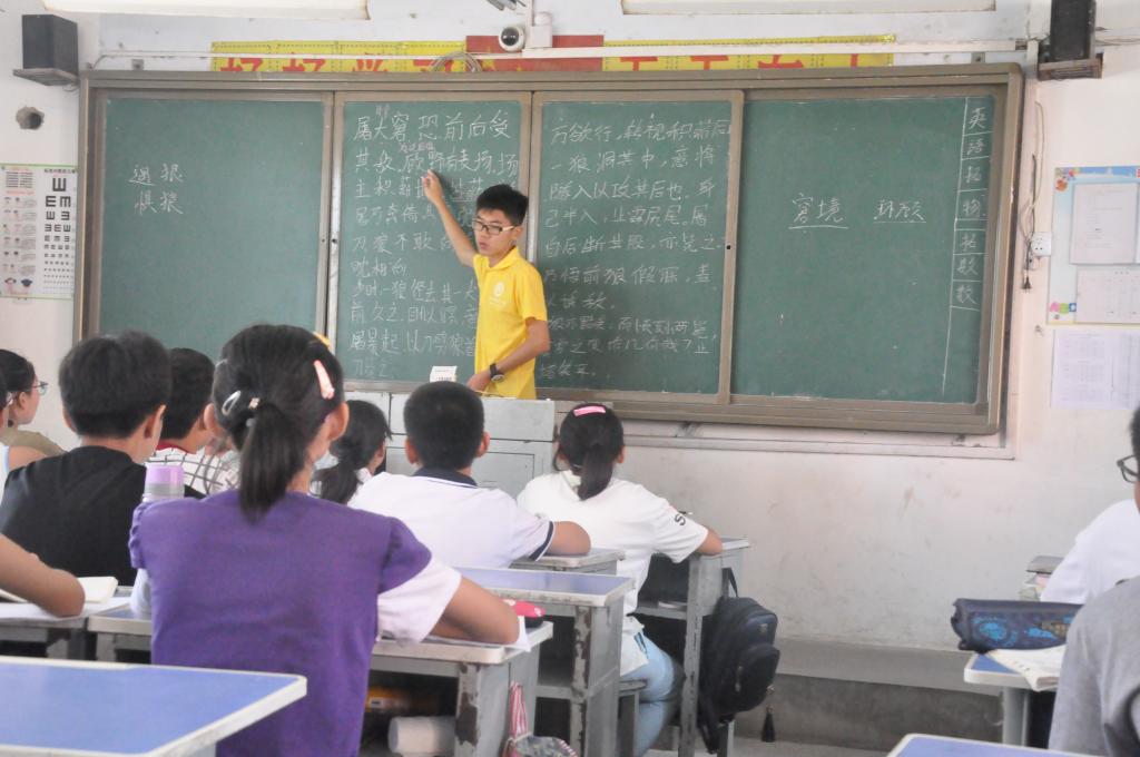 到达银山中学后,支教团队与学校双方有计划的开展了此次活动的各项工作交流,学校领导就学生全面发展的问题向队员们作了深入的阐述。“小候鸟”队的队员进入各个班级与学生们沟通交流,根据学生们的实际情况制定了各科目的教学计划,并实行分组教学。虽然大多数队员都是第一次接触课堂教学,经验不足,但是他们都以最饱满的热情和最澎湃的激情积极融入支教生活中,每位支教同学都努力备课,同时认真提升自己。担任班主任的队员为保障孩子们的安全,每天上课点名,下课整队,做好考勤工作。除了日常上课外,队员们还与学校优秀教师积极沟通,希望在他们的带动下,通过自身的不懈努力,尽快提高自己的教学水平,从而使孩子们能够收获更多有益的知识与文化熏陶。