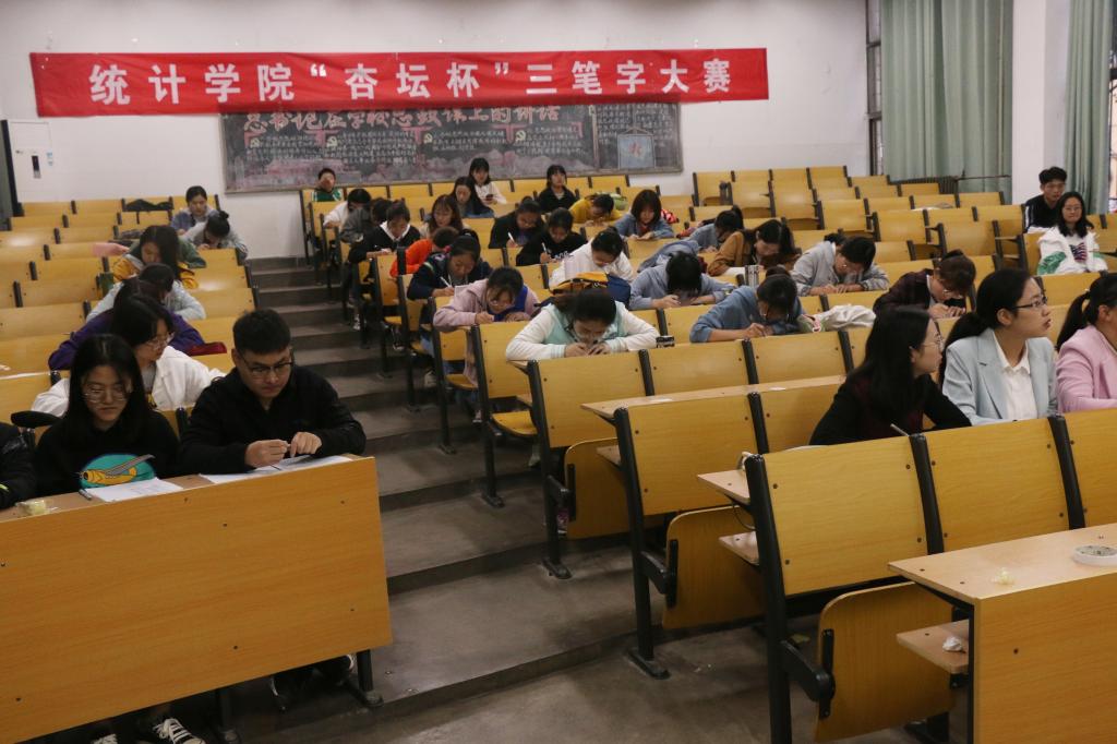 学习部承办的“杏坛杯”三笔字大赛于10月11日下午五点在数科楼楼101教室顺利举办。本次比赛由胡锋、苏玉霞、李宴美、张风娇、张庆伟五位老师担任评委。