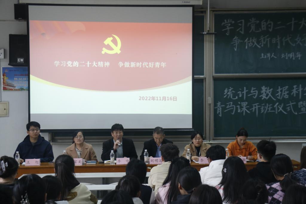 党委书记刘明海以“学习党的二十大精神 争做新时代好青年”为主题为学生骨干开启“青马工程”第一课。刘明海书记对体育赛事直播