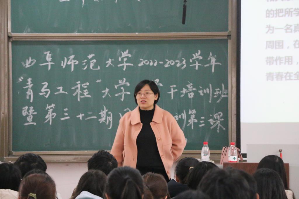 于3月17日下午两点在西联一教室举行曲阜师范大学 2022—2023 学年“青马工程”大学生骨干培训班暨第三十二期团校培训第三课。本次培训邀请到曲阜师范大学团委副书记李玲主讲,体育赛事直播