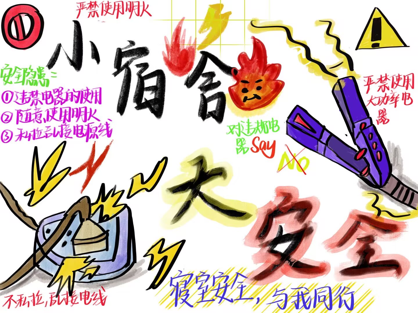 本次活动要求参赛人员以个人为单位,绘制以宿舍安全为主题的手抄报或海报。活动结束后由宿管部相关负责人汇总提交至评分组,并选拔出一等奖一名、二等奖一名、三等奖两名,为此次活动画下圆满的句号。通过此次活动,同学们不仅了解了宿舍安全注意事项,也提升了创建和谐宿舍的意识和决心。