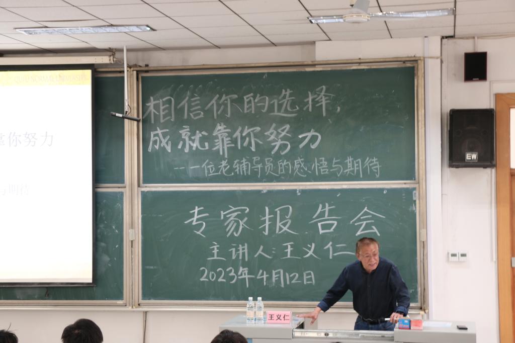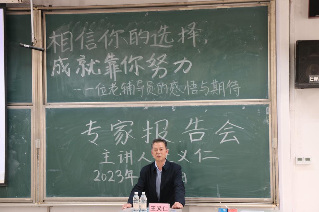 学风建设。讲述过程中,王义仁老师从一名从业多年的资深辅导员角度对在场辅导员和参会学生进行经验传授和耐心教导,从品行要端正、确实要扎实、身体要强壮和目标要明确四个方面强调大学生应德智体美劳全面发展,鼓励同学们要培养自我约束力以及分析问题和解决问题的能力,争取将规划的目标落到实处。从王老师风趣幽默、内容详实的报告中,在场老师和学生深受启发,对接下来的工作和学习有了更加清晰的目标。会议最后,季中书记进行总结发言,希望同学们今后在各方面严格要求自己,充分利用学校资源,对自己的未来负责,度过精彩而有意义的大学生活。