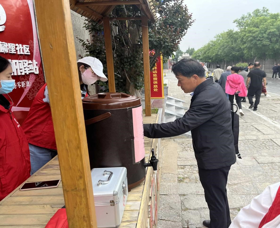 活动开始前,阙里社区红帆驿站旅游服务志愿活动于4月26日线上招募,活动吸引了众多统院学子报名加入。志愿服务活动期间,正是“三孔”景区游客高峰期,志愿者团队以饱满的精神和热情的态度来迎接、招待游客,为游客提供咨询、引导和送爱心热水等便民服务,并负责打扫街面卫生以保持街道干净整洁,给游客带来舒心、愉快的旅游体验,助力文明旅游,提高游客满意度。在活动最后一天,志愿者团队接受了来自曲阜市电视台的采访,其中一名志愿者说到:“很荣幸能够成为本次活动志愿者,虽然志愿服务工作简单,但我感到责任重大且乐在其中。”3天的志愿服务活动里,志愿者们都认真尽责,收获颇丰。