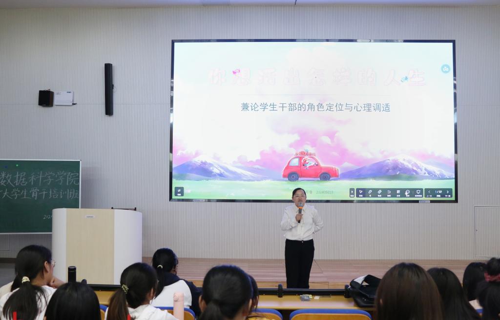 在此次培训中,石倩书记从宫崎骏的动画电影《你想活出怎样的人生》入手,用通俗生动的语言,教导学生干部们应该勇敢接纳真正的自己,这样才能选择自己想要的人生,做一个真正的人,做一个“同一整合”的人。随后,石倩书记针对“学生会干部对于自己的角色定位与心理调适”进行宣讲,从身份定位、动因定位、职能定位三个方面阐述高校学生干部的角色定位,指出学生会干部首先应该明确自己的动因定位,其次应该从学生、学生干部与成年人三个身份来明确自己的职责和任务,最后石倩书记表示学生干部应该起到带头作用、助手作用、桥梁作用、凝聚作用与服务作用。这有利于帮助学生干部提升个人能力水平,增强责任感。同时,石倩书记指出学生干部们应该时刻调整自己的心理状况,从多个角度为学员们提供了应对之法,希望能帮助学员们调整心态,缓解心理压力。