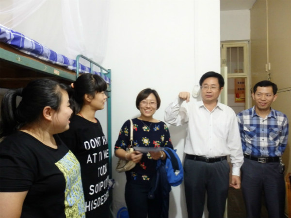 本次活动以宿舍为单位,共走访了包括校内公寓9号楼和北公寓1号楼在内的所有15级新生宿舍。院领导对新生宿舍逐一慰问,亲切的询问他们家乡在哪,在学校住的习不习惯,在饮食方面适不适应等,用热情的态度和亲切的话语表达了对新生的关怀。李玲老师就新生的个人安全问题进行了叮嘱,提醒他们提高警惕,加强自我保护。此外,学生会干部们也热心地为新生介绍学校的有关情况,还鼓励他们关注体育赛事直播