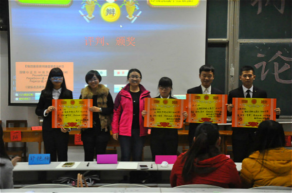 比赛开始后,场上双方辩手你来我往,唇枪舌战,围绕着“剩女现象是男人的错还是女人的错”以及“冰桶挑战是否应该推广”展开了激烈的辩论。辩论中选手们始终面带微笑,侃侃而谈。良好的风范、出色的口才、敏捷的思维令场下观众为之折服,掌声不断。最终2015级应用统计班代表队凭借着出色的反应能力和严谨的逻辑夺得本届辩论赛亚军,2015级统计班获得季军。