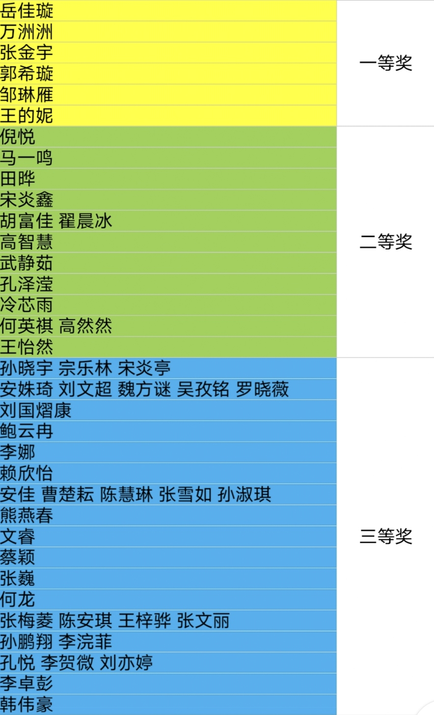 评选结果如下: