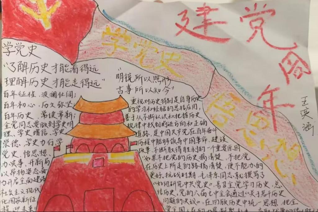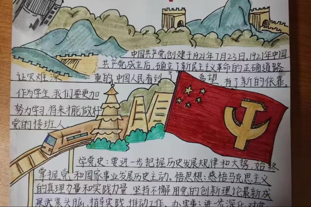 手抄报设计大赛主题为“学党史、悟思想”,同学们通过收集相关资料,发挥创意,精心设置版面,深刻学习党的历史、感悟党的思想,完成并丰富自己的作品。这次比赛不仅有利于同学们深入学习中国特色社会主义思想,而且扩大了同学们的知识面,充分展现了同学们积极昂扬的精神风貌和紧跟党走的坚定信念。