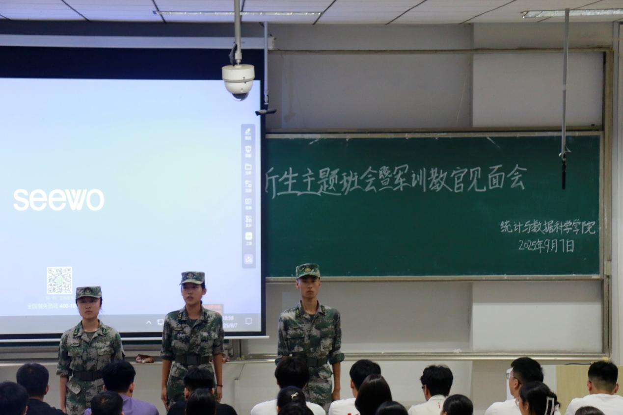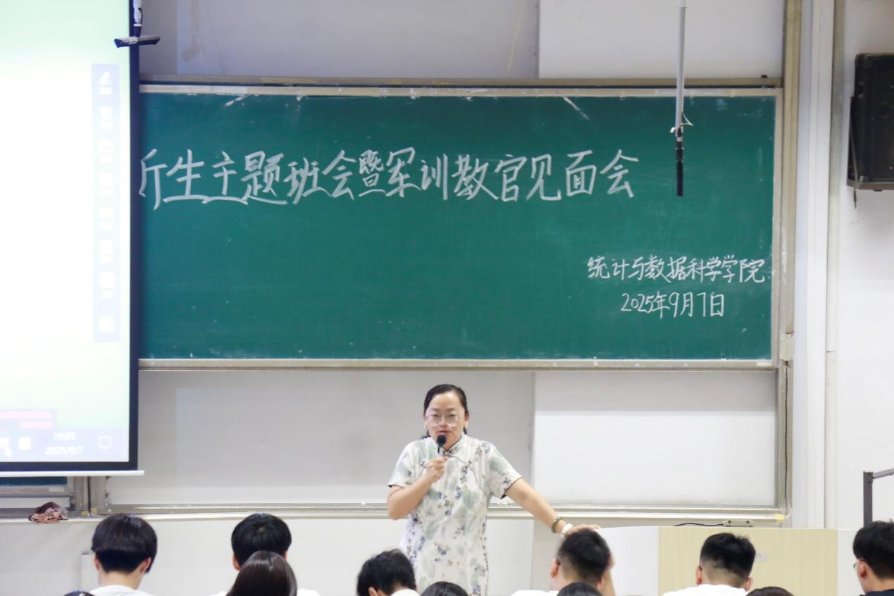 于2025年9月7日在综合楼201举办了新生主题班会暨军训教官见面会,2025级辅导员李宴美及2025级全体同学参与了本次活动。