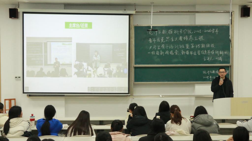 2025-2026学年“青马工程”大学生骨干培训班暨第35期团课在综合楼101教室顺利开课。本次课程特别邀请学校宣传部刘萌老师,为学员们带来新闻摄影与校园新媒体运营的专题分享。