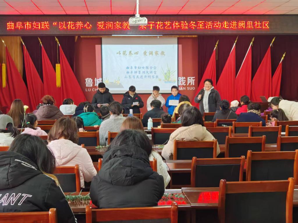 的学生志愿者们与阙里社区居民于12月21日共同举办以“以花养心,爱润家教”为主题的家庭插花活动。
