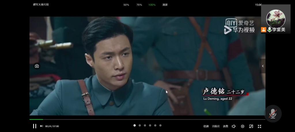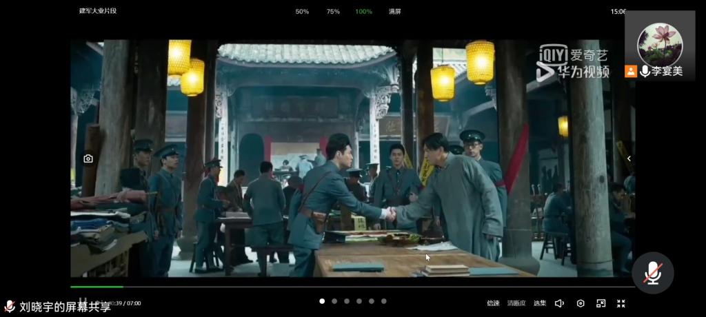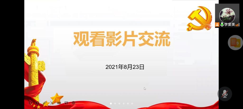 在本次会议中,李宴美老师带领大家观看了建军大业影片片段。该影片描述了1927年第一次国内革命战争失败后,中国共产党为挽救革命,于当年8月1日在江西南昌举行武装起义,从而创建中国共产党领导人民军队的故事。该影片生动再现了中国人民解放军走过的曲折而又顽强的不平凡之路,为取得胜利,多少将士心怀坚定信念,抛头颅、洒热血。从南昌墙头的第一声枪响,到今天拥有先进的武器装备,人民解放军走过的是一条披荆斩棘、一路壮大的路。