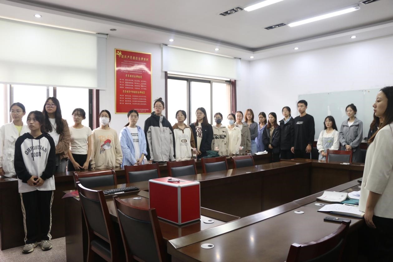 会议伊始,全体师生起立奏唱《中华人民共和国国歌》,会议在庄严的国歌声中拉开了序幕。在激昂的国歌声中,各位党支部成员更加坚定了自己“不忘初心,牢记使命”的工作理念。随后,李宴美带领大家学习《中国共产党章程》和《中国共产党基层组织选举工作条例》。
