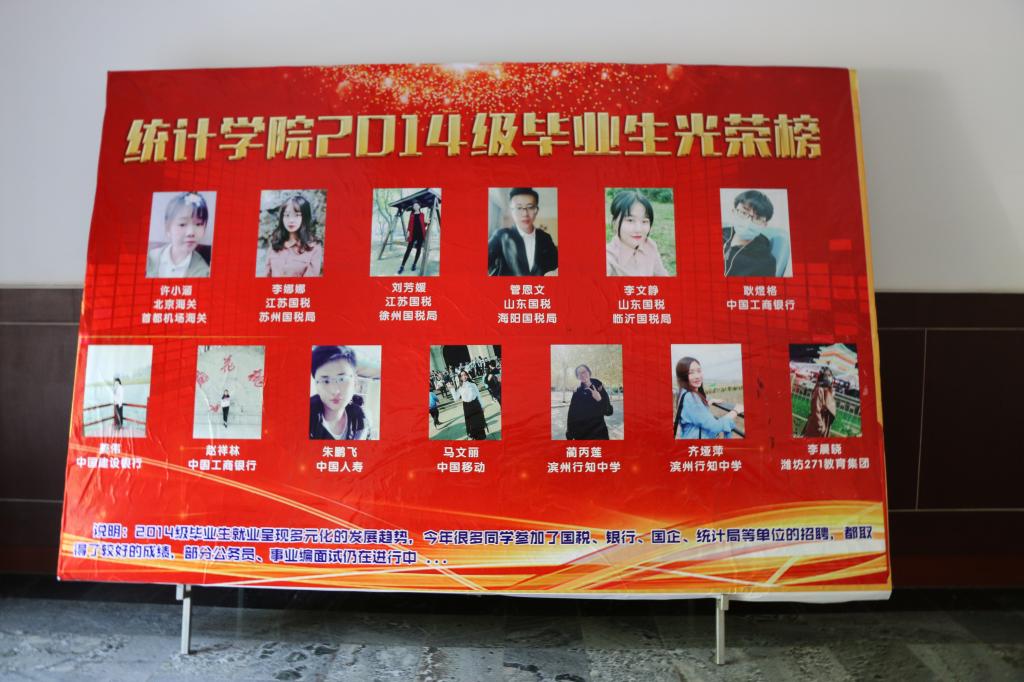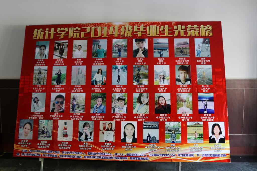2014级毕业生有两个专业,其中统计学专业61人,应用统计学专业50人,共111人。考取研究生35人,占所有学生的31%。而就业也呈现多元化的发展趋势,今年很多同学参加了国税、银行、国企、统计局等单位的招聘,都取得了较好成绩。另外,部分公务员、事业编面试仍在进行中。