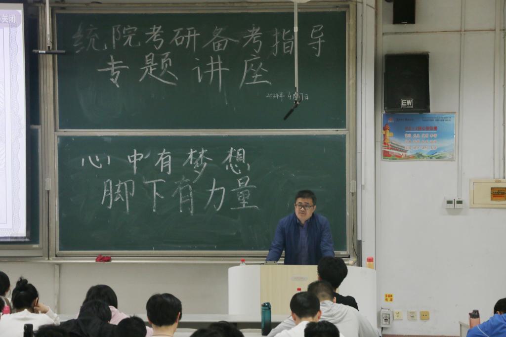 于4月17日下午在综合楼301教室召开考研备考指导专题讲座。本次讲座由王文武教授主讲,21级辅导员李宴美老师出席,21级全体同学参加。