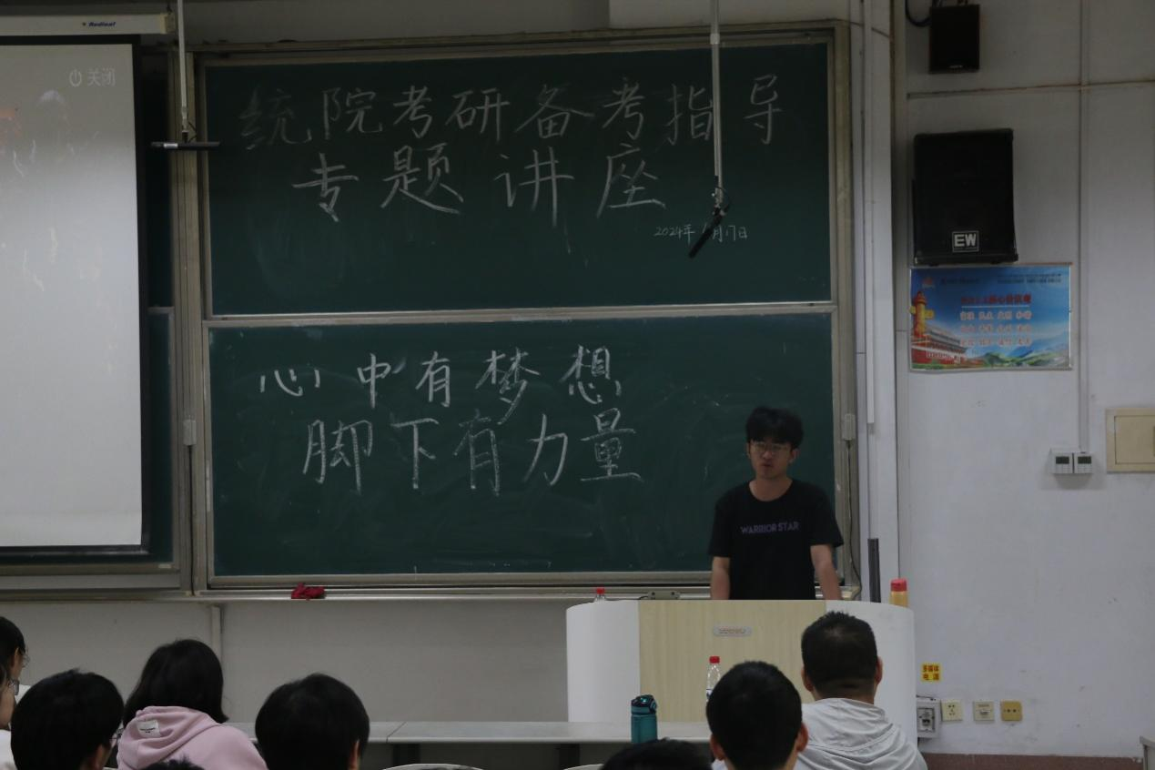 23、24届考研、升学等情况,通过列举近两年来的保研率、考研报录比等数据,直观地向同学们展示了当前考研的真实情况,并与大家交流分享了考研的技巧与经验。最后,2020级陈位正同学分享了他个人的备考经验和专业课学习方法。