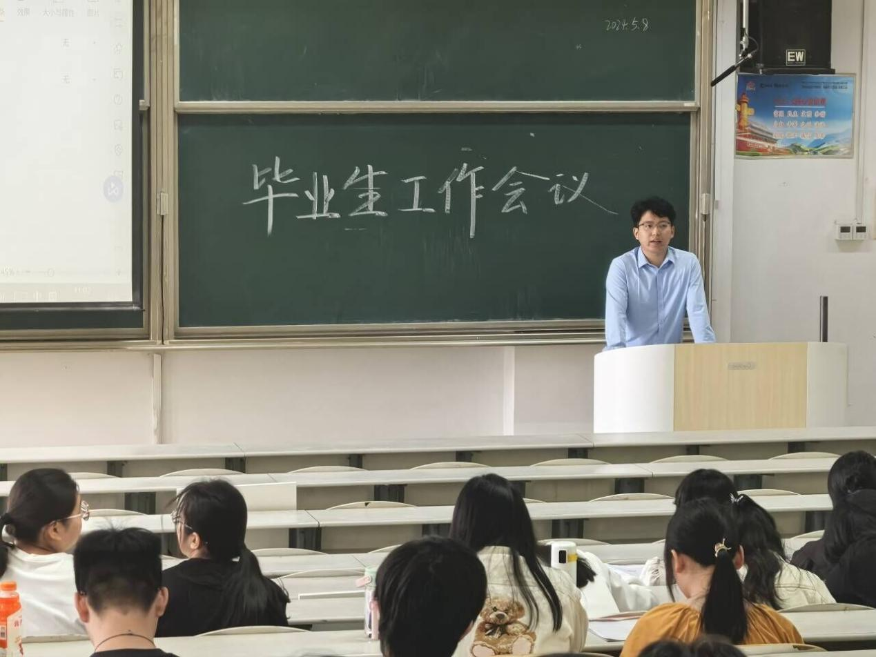 于5月8号在综合楼召开毕业生工作会议。20级辅导员季中、王旭出席会议,20级全体学生参加。