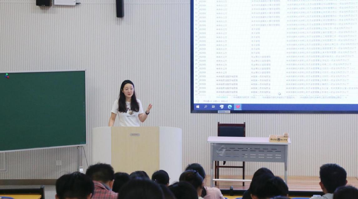 接着由成功进入私企的周文清同学介绍她的经验和方法,她从未来规划,心态转变和工作准备三个方面展开介绍,她提出对未来的规划不可好高骛远,脱离实际,要把自身条件和目标相结合,鼓励同学们调整心态,抓住机遇,把目光放长远。