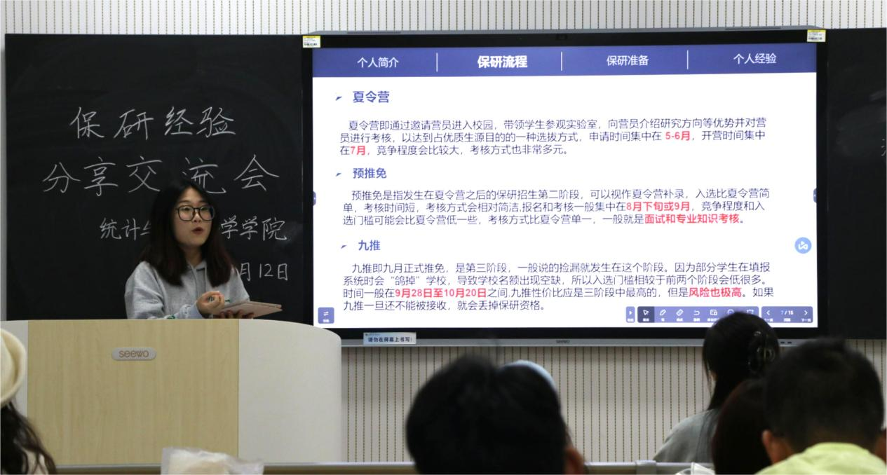 于2024年10月12日19:00在致知楼b105教室举办保研经验分享会。本次分享会邀请到孙嬿如、王玉洁、李亚妮、陈添硕和孙小闯进行经验分享,体育赛事直播平台