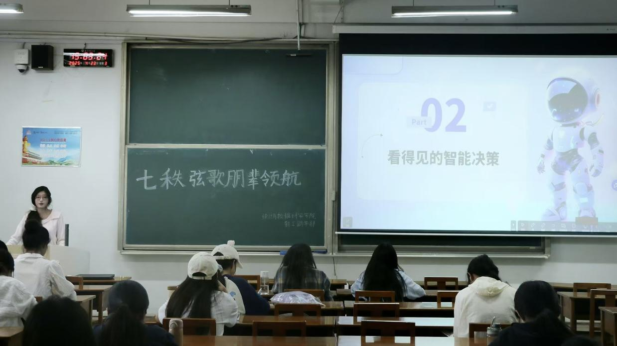 活动现场,学生们频繁举手提问:“非计算机专业如何入门 AI?”“科研项目对经济困难学生有哪些支持政策?” 主讲人结合自身申请奖学金、参与科研项目的具体路径逐一解答,并分享了 “勤工俭学 + 专业实践” 的时间管理技巧。活动现场,学生们积极举手回答问题,氛围活跃,展现出对智能技术和专业知识的浓厚兴趣。