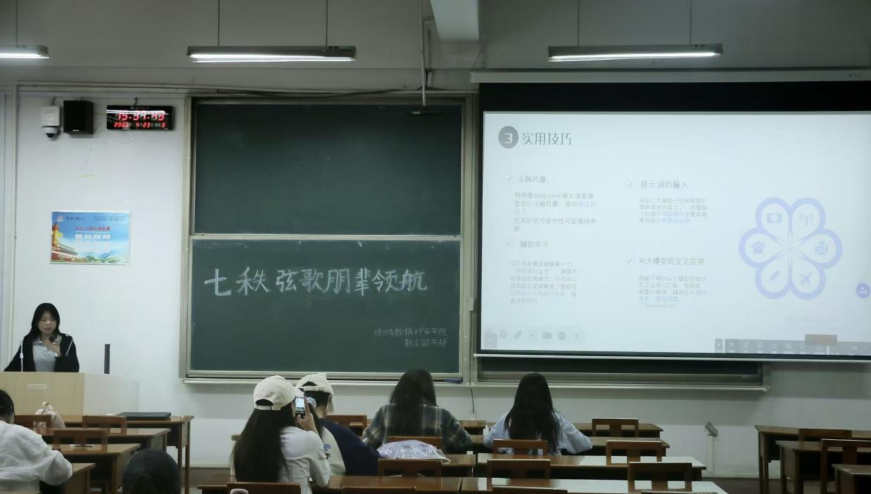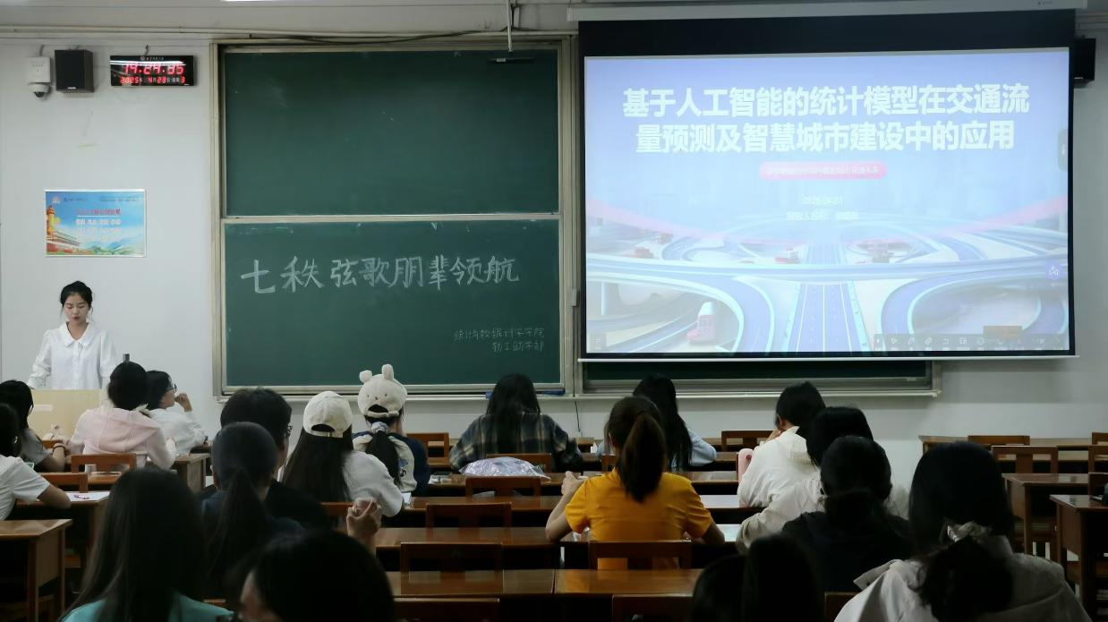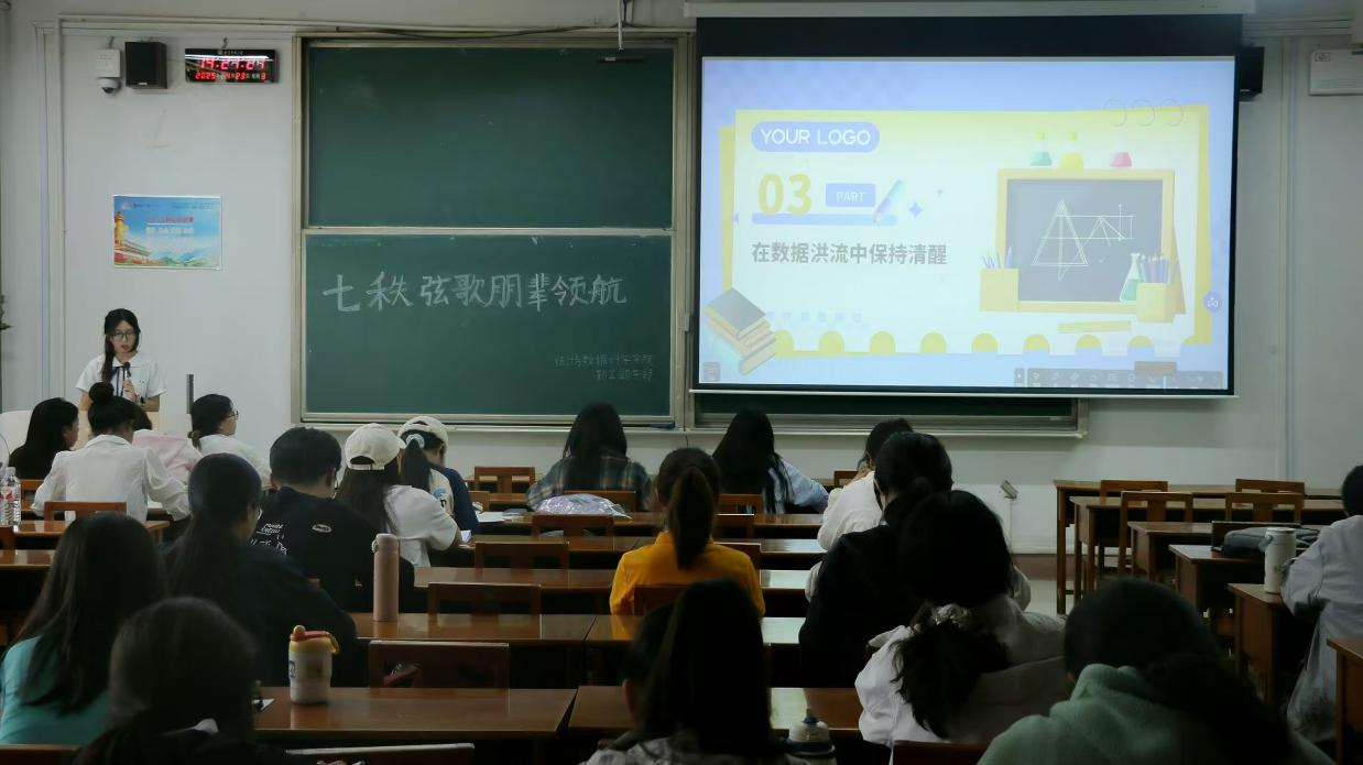 陈淼淼以 “统计创新应用” 和 “数据引领未来” 为主题,结合 AI 技术,梳理了统计学从传统 “数据分析工具” 跃升为 “智能引擎” 的发展历程,简单探讨了其重塑行业逻辑、优化决策的变革力量,让同学们对统计学的发展趋势和重要性有了进一步的认识。