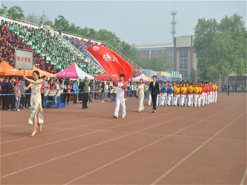 的运动员方阵手举彩扇,以整齐划一,器宇轩昂的姿态吸引了全校师生的目光;“凌云赛场,斗志昂扬;统计学子,共创辉煌”的口号更显出了体育赛事直播