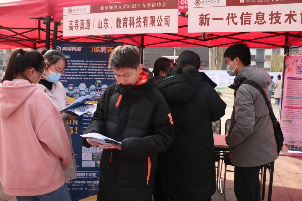 利用自身专业影响、实习单位、校友等优势,联合地方政府、企业等部门,如济南数据分析公司、济宁市大数据局、曲阜市人社局、统计局等单位推送了高质量就业单位来校招聘。本次招聘会主要面向统计学、应用统计学、数学与应用数学、信息与计算科学、学科教学(数学)、软件工程、物联网工程、电子信息等专业,同时涵盖了教育类、管理类、计算机类等多个学科,提供就业岗位近二百个,吸引了众多应届毕业生前来应聘。曲阜市人社局在现场设岗宣讲就业政策,极大开阔了学生的就业思路。招聘现场井然有序,热烈的气氛吸引了很多非应届生前来咨询,提前了解专业适应岗位及用人要求。