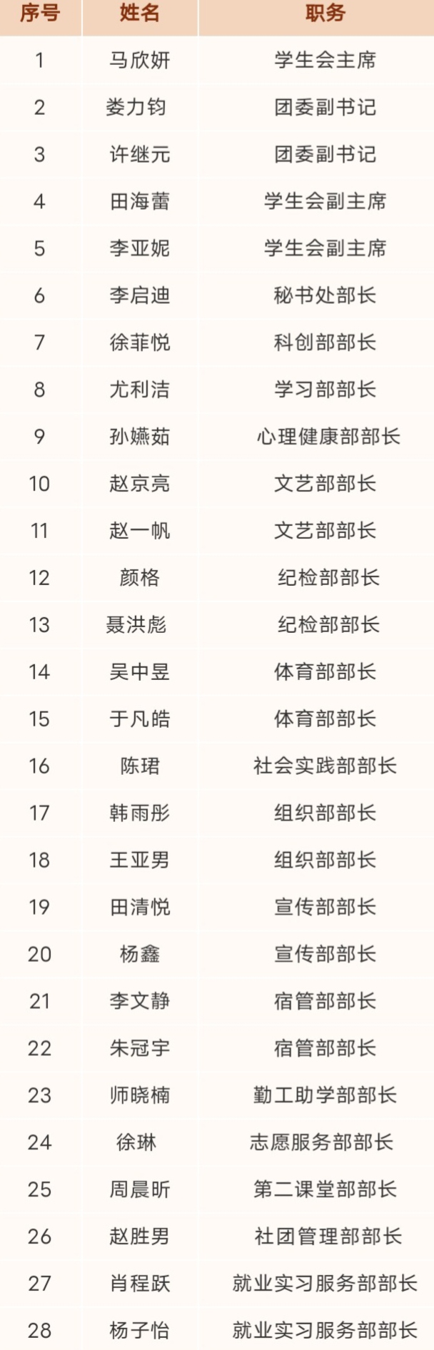 (通讯员:田清悦)2023年4月1日上午八点,体育赛事直播平台 第二届团委学生会换届选举会议在综合楼203教室顺利召开。本着公平、公开、公正的原则,经个人申请、竞选演讲、综合审查等环节,最终确定马欣妍等28人为体育赛事直播平台 第二届团委学生干部,现将换届名单公示如下:
