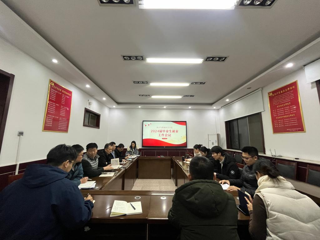 目前的就业状况提出了自己的工作思路,并进一步明确了毕业指导教师在学生就业工作中所起的作用和责任。刘明海书记在会上指出,要明确目标,制定切实可行的工作计划,进行访企拓岗,积极发动专业课教师力量,实时关注2024届毕业生就业工作进展,确保2024届毕业生就业工作目标任务达成。赵胜利院长指出,措施要实,工作要细,让每一位有就业意愿的学生尽快尽早找到工作,落实一对一学生就业档案,发挥辅导员、就业指导导师、学业导师的作用,一对一动员,一对一指导,把帮扶工作落到实处,取得实效。季中书记指出,进一步完善2024届毕业生就业方案,落实本科生指导导师责任,将学生实习实践与就业工作相结合,积极推动学生就业。