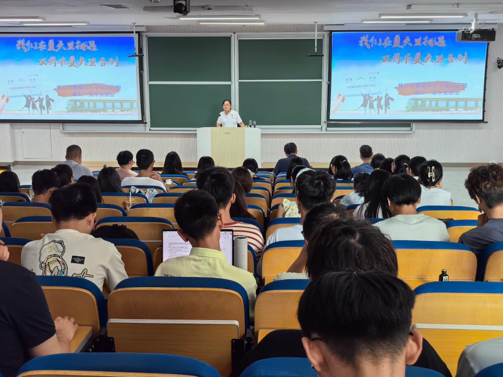 通讯员:李宴美)6月13日上午,体育赛事直播平台 2025 届毕业生班会致知楼102温情启幕。本次班会“青春不散场,未来皆可期”为主题,特别设置毕业生视频播放、参军入伍宣讲、校徽与毕业礼物印章赠送、辅导员李宴美毕业寄语、党委副书记季中毕业祝福等环节,为毕业生们送上充满仪式感的毕业礼。