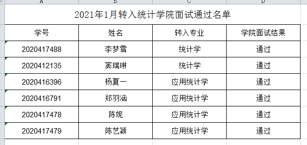 2021年1月转专业面试结果